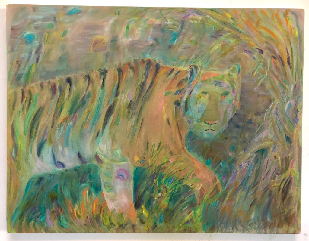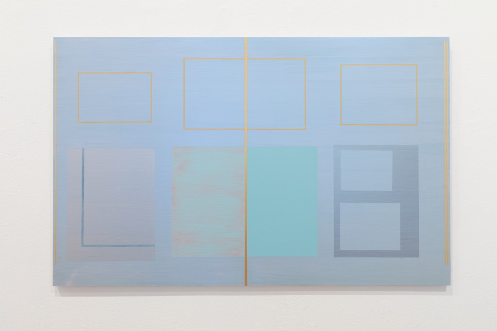 Upon first glance, Brant and Pibal’s work appears to inhabit two separate worlds; Pibal uses acrylic paint in flat layers to describe diagrammatic situations of line and color. Her work is engaged in a critical dialog with the history of abstract painting, graphic design and architecture. This is present in geometric form and metallic surfaces, where hard-edged imagery occasionally softens into blended fields of pigment. Brant, on the other hand, makes figurative work with oil paint to describe natural spaces. Light reflections on water, minerals in a glass cabinet, and animals in the wild are glimpses of a fleeting world. Thin washes of color build into spaces which engage personal narratives and address legacies of American landscape painting.