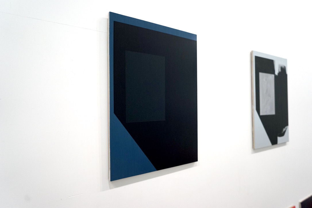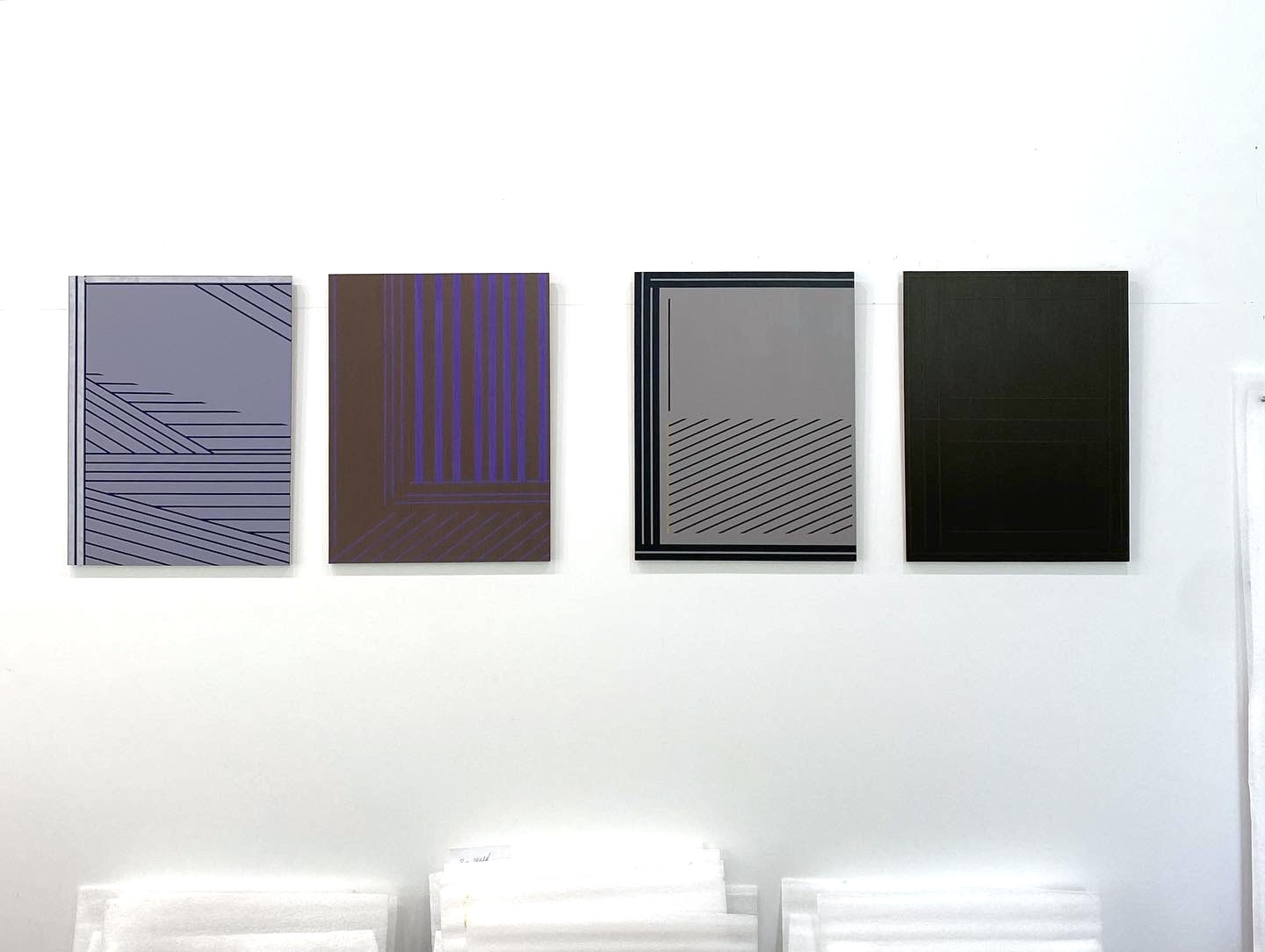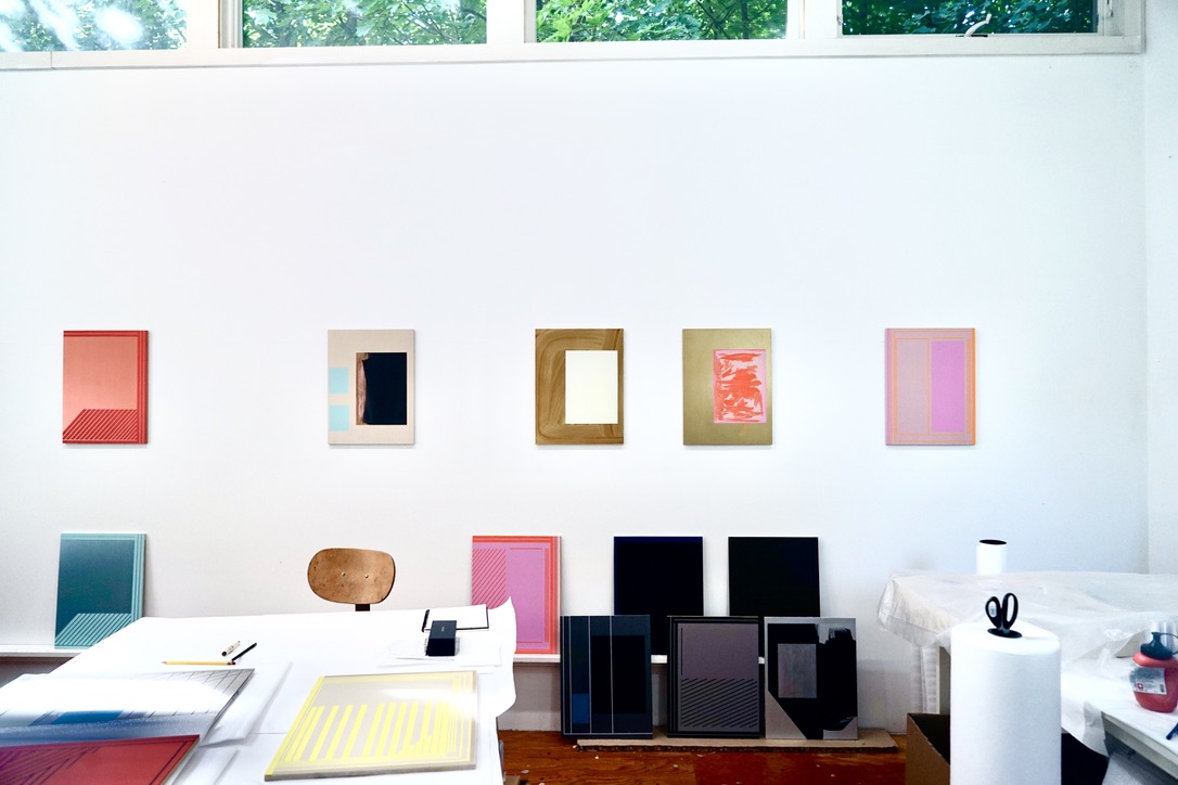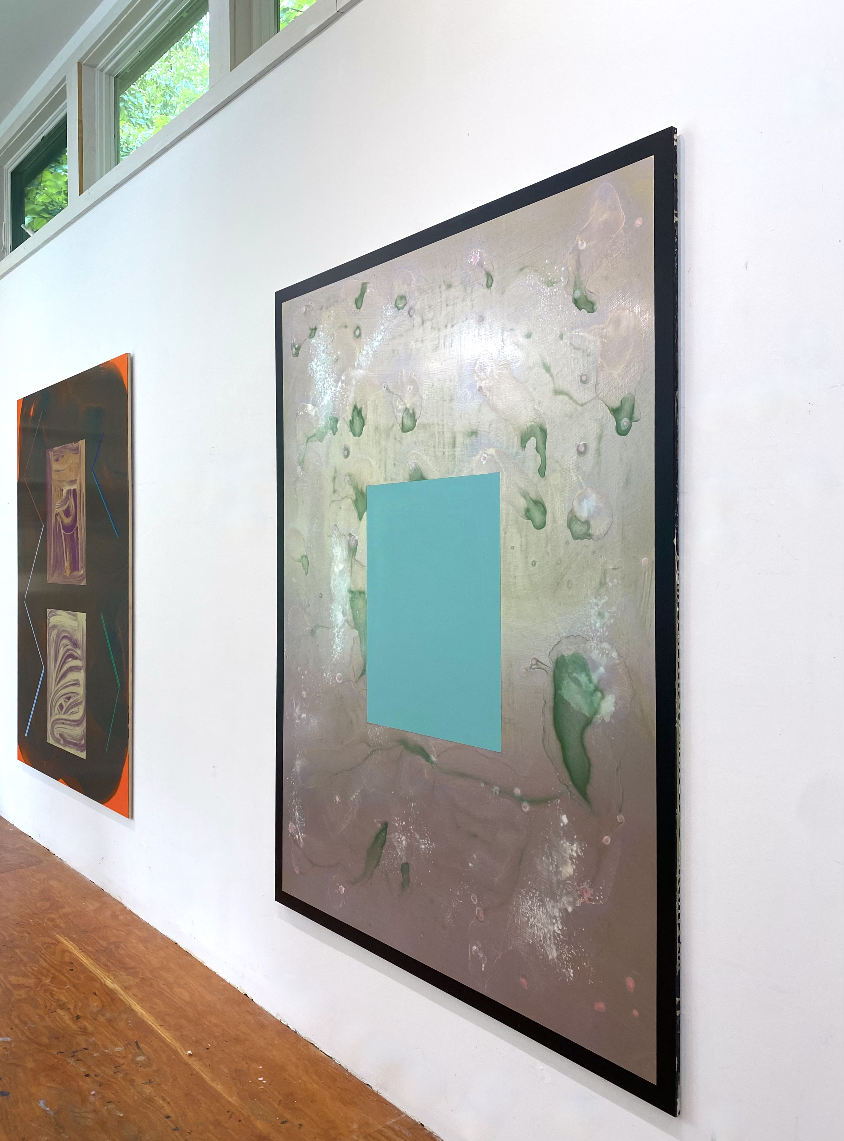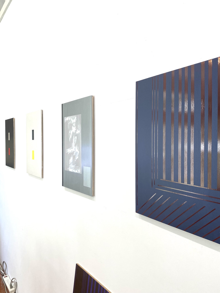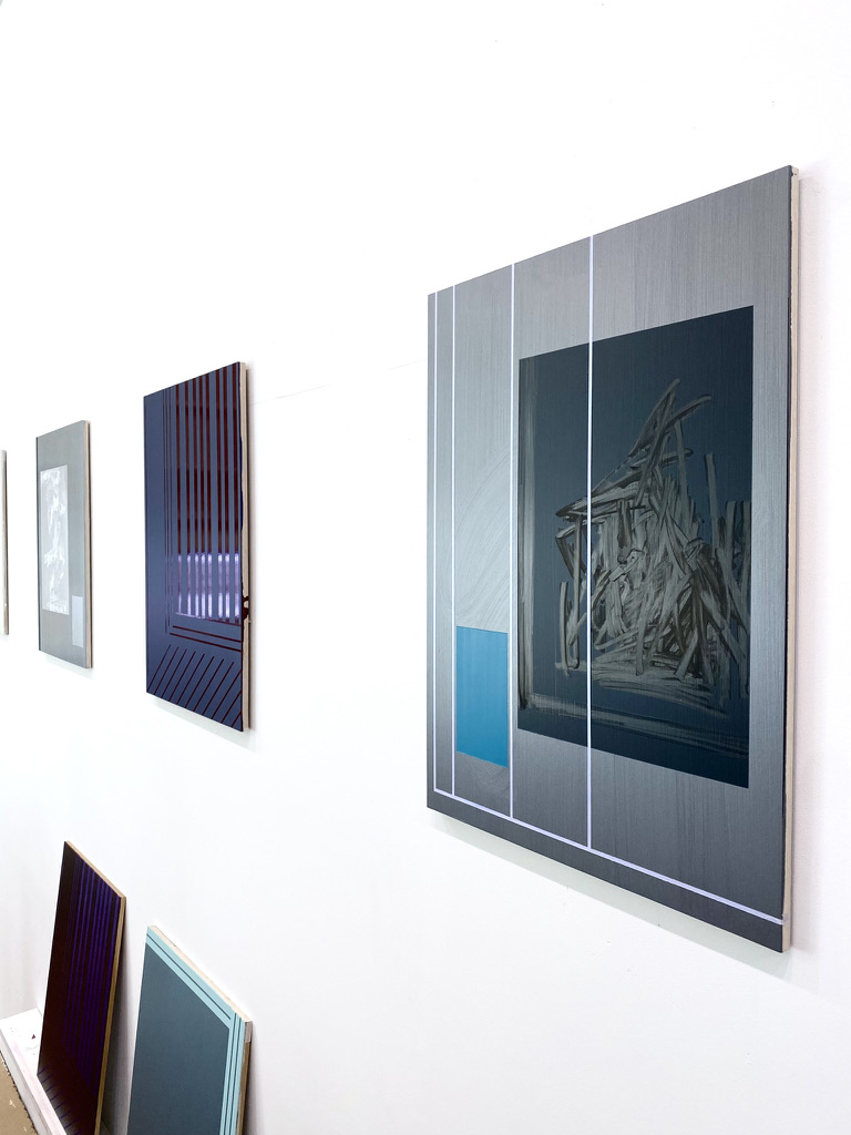 Studio and installation views, 2022-2024. All works acrylic or acrylic and oil on aluminum panel: