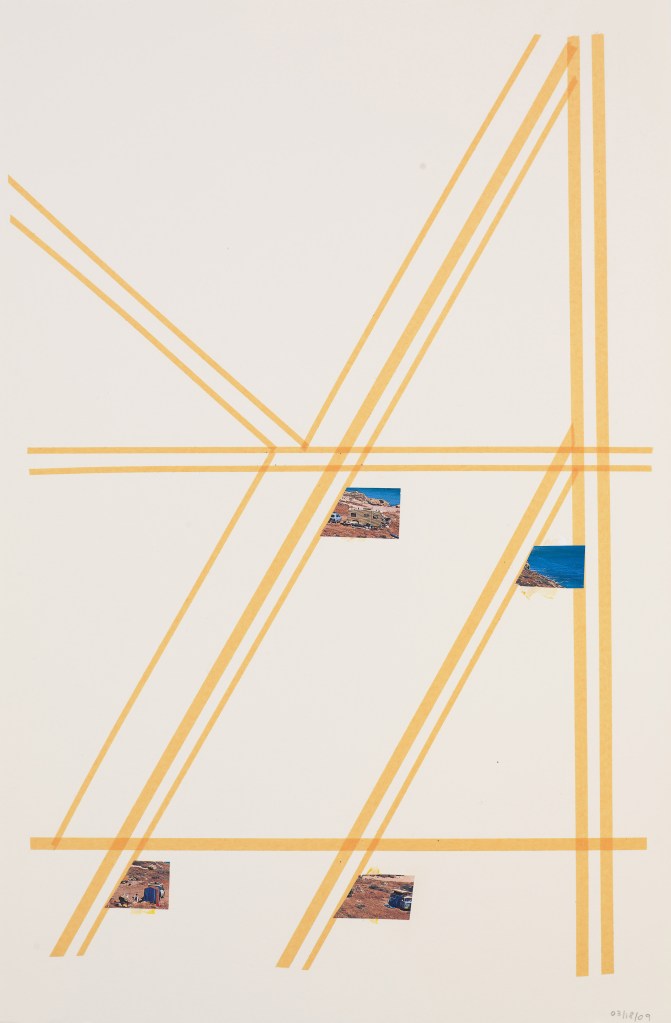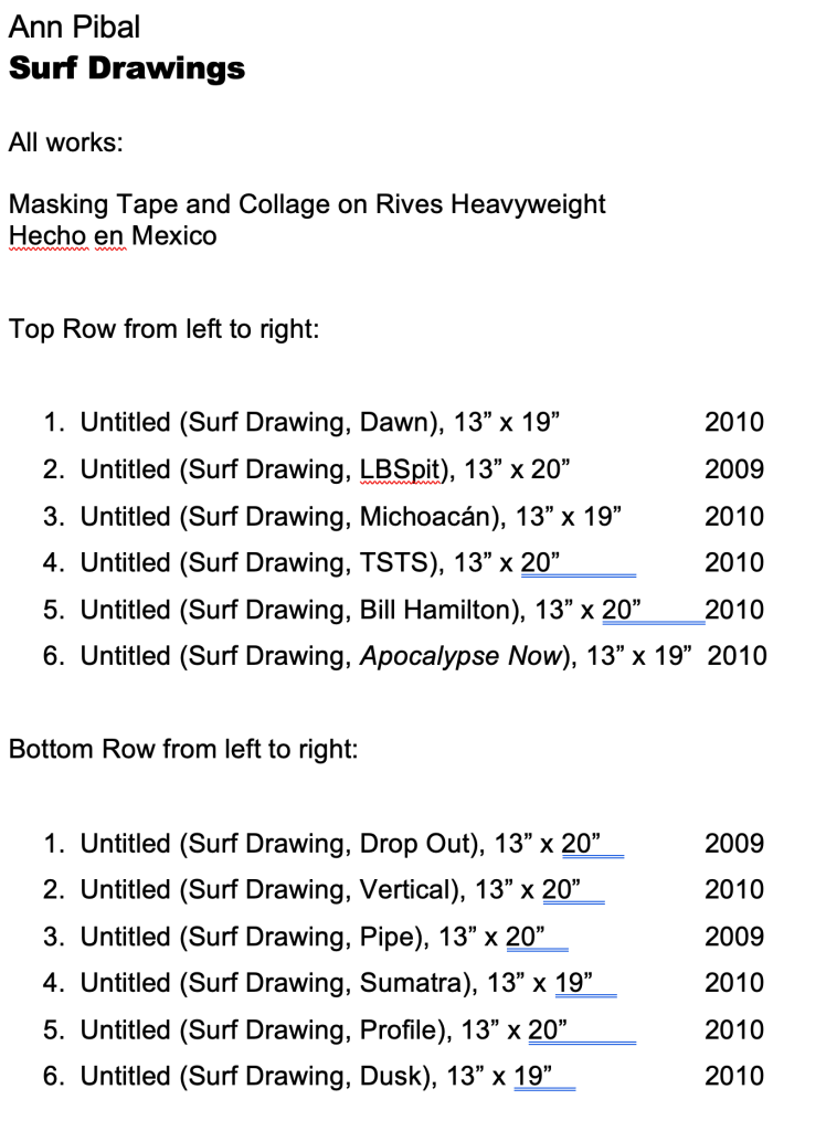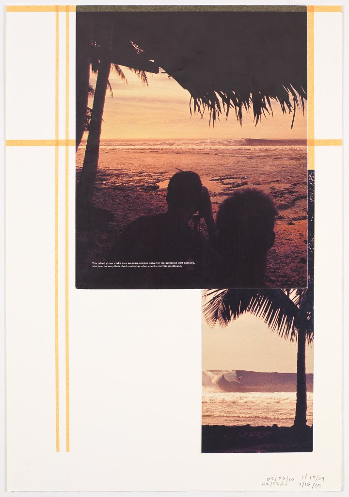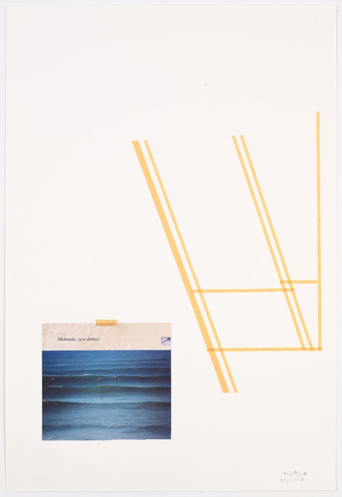 Untitled (Surf Drawings), masking tape and collage on paper, 13 x 19″: